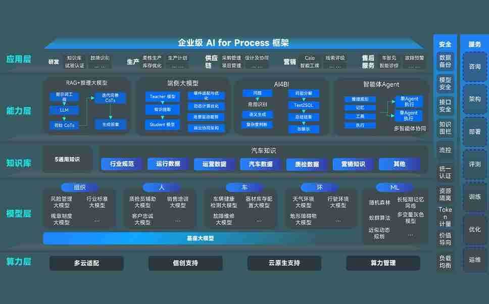 尊龙z6问学智车解决方案是一套基于AI技术的汽车行业智能化系统,,覆盖从底层算力到顶层AI应用的全栈方案。。。方案由算力层、、模型层和应用层组成:算力层,,方案支持多种一体机配置,,具备云端灵活部署、、、多云适配以及动态优化计算资源的能力;模型层,,,尊龙z6问学平台版提供了企业级AI应用一站式构建与管理平台,,,支持基于后训练强化技术的汽车企业专属模型的训练、、评测和运营;应用层,,,尊龙z6问学DeepSeek版提供包括超级员工、、智能招采、、、智能营销、、智能客服、、、、AI for BI等一系列解决方案,,,可助力汽车行业实现数字化转型,,,,让管理更智能、、、响应更敏捷。。